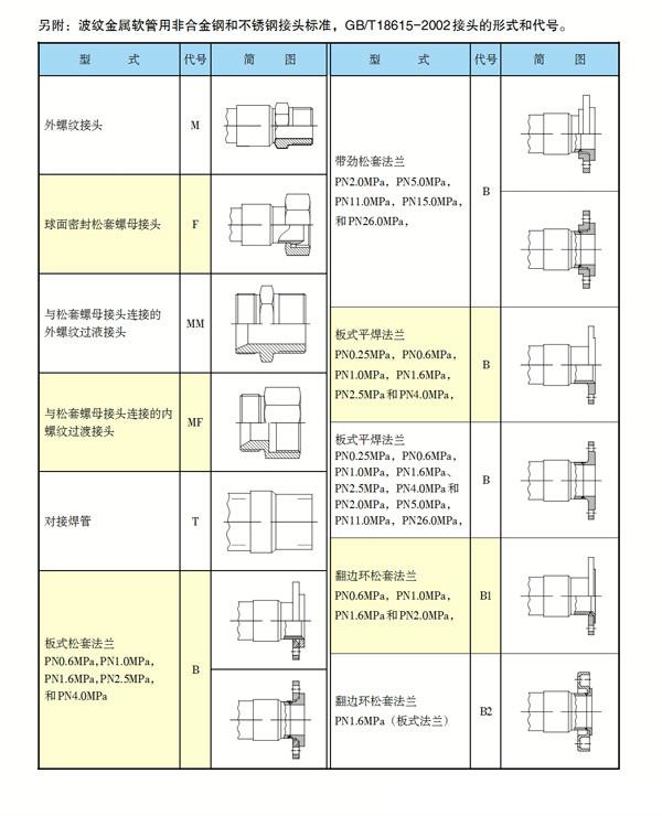 波紋金屬軟管標準接頭型式和代號